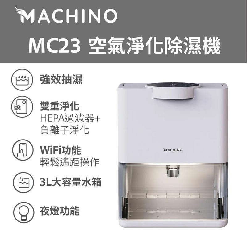 Machino MC23 空氣淨化除濕機 香港行貨 一部體積輕巧,擁有HEPA+負離子高效淨化及抽濕功能的除濕機。左右出風設計,雙核強力除濕同時淨化空氣,3L大容量水箱,低噪+氛圍燈設計無論放房間、Office都適合,一年四季都可用。