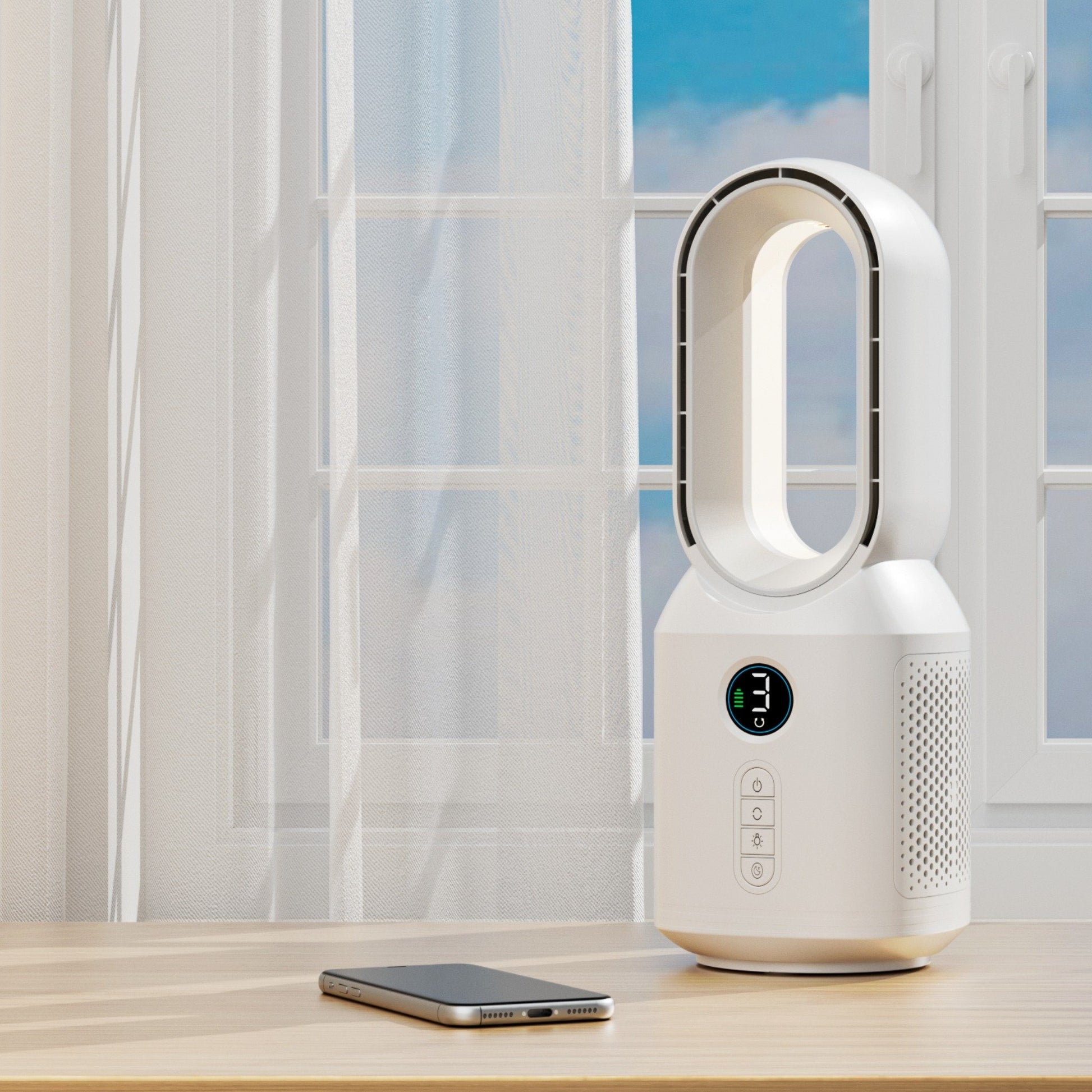 - 無刀片風扇增強了安全性和只有極低的噪音